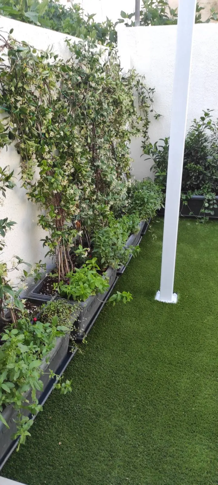 Στις φωτογραφίες φαίνεται η εντυπωσιακή αλλαγή: από τον άδειο, γυμνό χώρο, σε έναν ζωντανό κήπο με καταπράσινο γκαζόν και προσεκτικά επιλεγμένα φυτά.